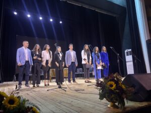 Ученици от нашето училище рецитираха, пяха и танцуваха. От мултимедийните презентации пролича духът на гимназията, която години наред следва своя девиз „Традицията е в основата на бъдещето“. Стъпило на здрави просвещенски основи училището е в ход с времето. Негови ученици участват и печелят конкурси, търсят нови предизвикателства.