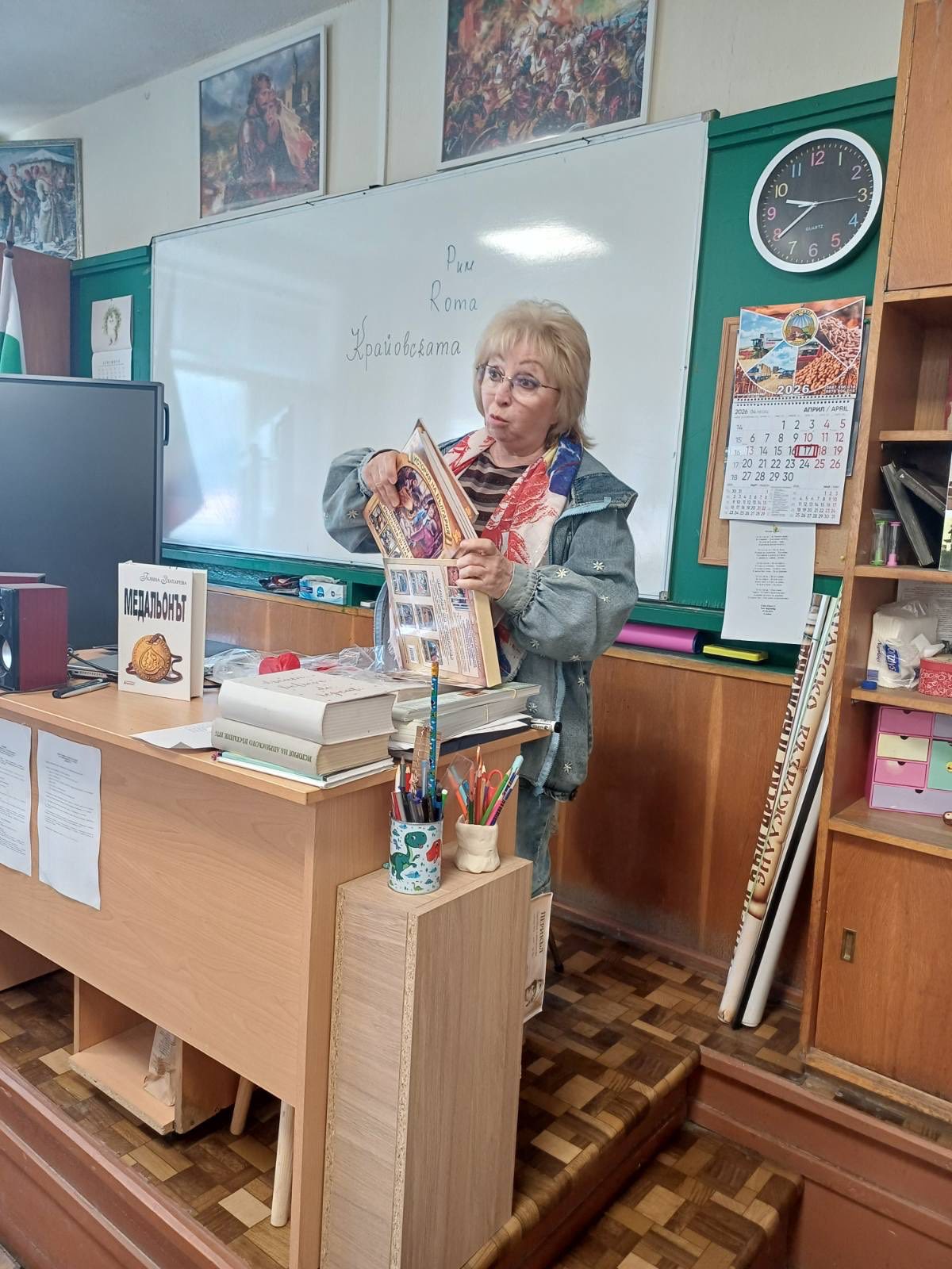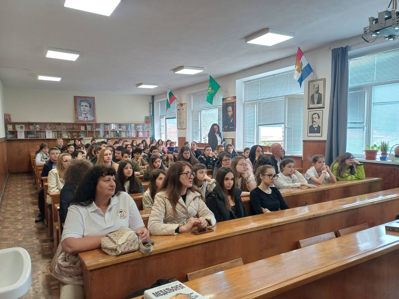 На 20.04.2026 г. в СУ“ Саво Савов“, гр. Пирдоп, учениците от 5., 6. и 7. клас се срещнаха с писателката Галина Златарева. Тя е автор на книгата “ Медальонът“, интересен, вълнуващ и поучителен разказ за живота и дейността на предводителя на априлския бунт Гаврил Хлътев, познат в историята с името Георги Бенковски. Инициативата бе осъществена в деня, в който цяла България скланя глави пред чутовния подвиг на героите на Априлското въстание. На този ден отбелязваме 150 години от бунта на непоколебимите. Миглена Джежова, директор на училището, поздрави присъстващите учители ученици и госта. Напомни, че Априлската епопея отваря пътя към българската свобода. Ученици от 7.а клас разказаха накратко историята на Четвърти революционен окръг, събранието в Оборище и споменаха имената на героите. В кратък подкаст ученици попитаха г-жа Златарева за причината да напише “ Медальонът“. Последва урок по история от авторката на романа. В него присъстваха Великите сили, мрачните времена за българите, младите ентусиасти, които решават, че е време светът да чуе за страданията на българите. След думите на Бенковски “ Ставайте робове! Аз не ща ярем.“, съдбата на нашите предци е решена “ Свобода или смърт“. Учители и ученици задаваха въпроси, свързани с интересното заглавие. Както и за колко време се пише такъв роман. Авторката сподели, че е изследвала почти 4 години живота на Бевковски и за три години е завършила творбата. Разказа и за книгата си „Предсказателят“. Както и за новата си творба “ Борис и неговите синове“.